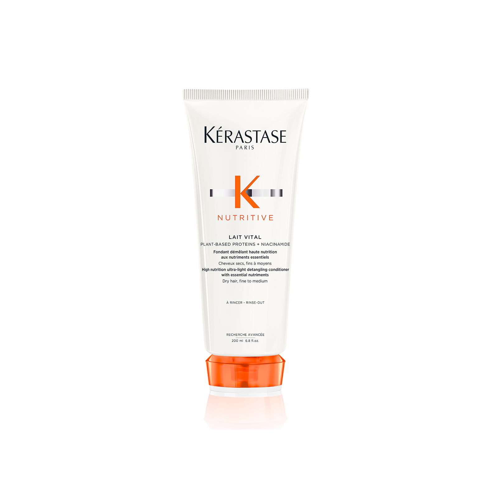 Lait Vital de Kérastase es un acondicionador desenredante ultraligero altamente nutritivo para cabello fino a medio seco. Contiene lípidos nutritivos y vitaminas que proporcionan una nutrición intensa, desenredando y suavizando el cabello seco. Lait Vital está repleto de nutrientes esenciales que aumentan la capacidad de la fórmula para nutrir y fortalecer el cabello. La poderosa fórmula liviana penetra la fibra capilar para hidratar profundamente y sella las cutículas para retener la humedad por más tiempo.